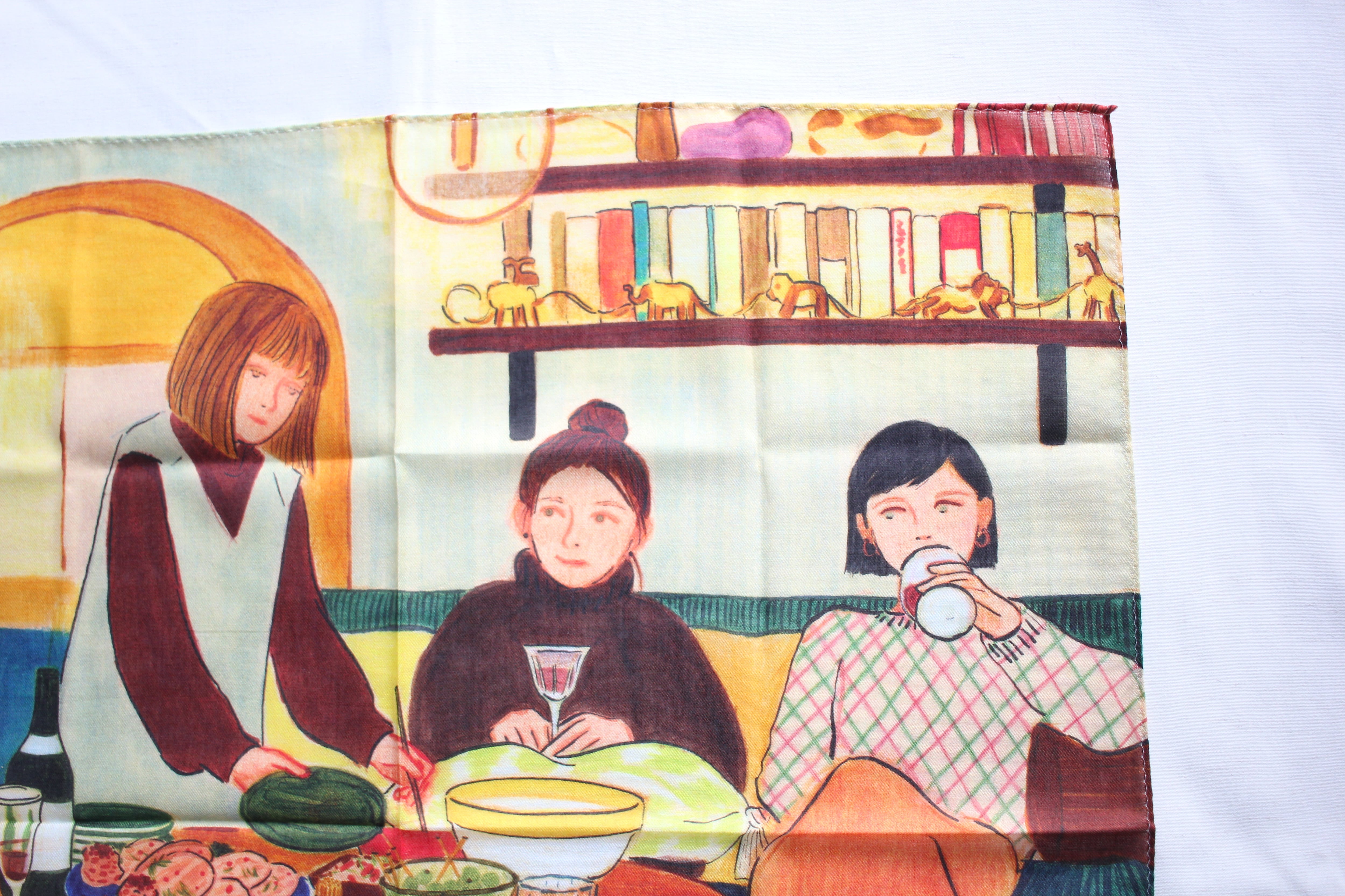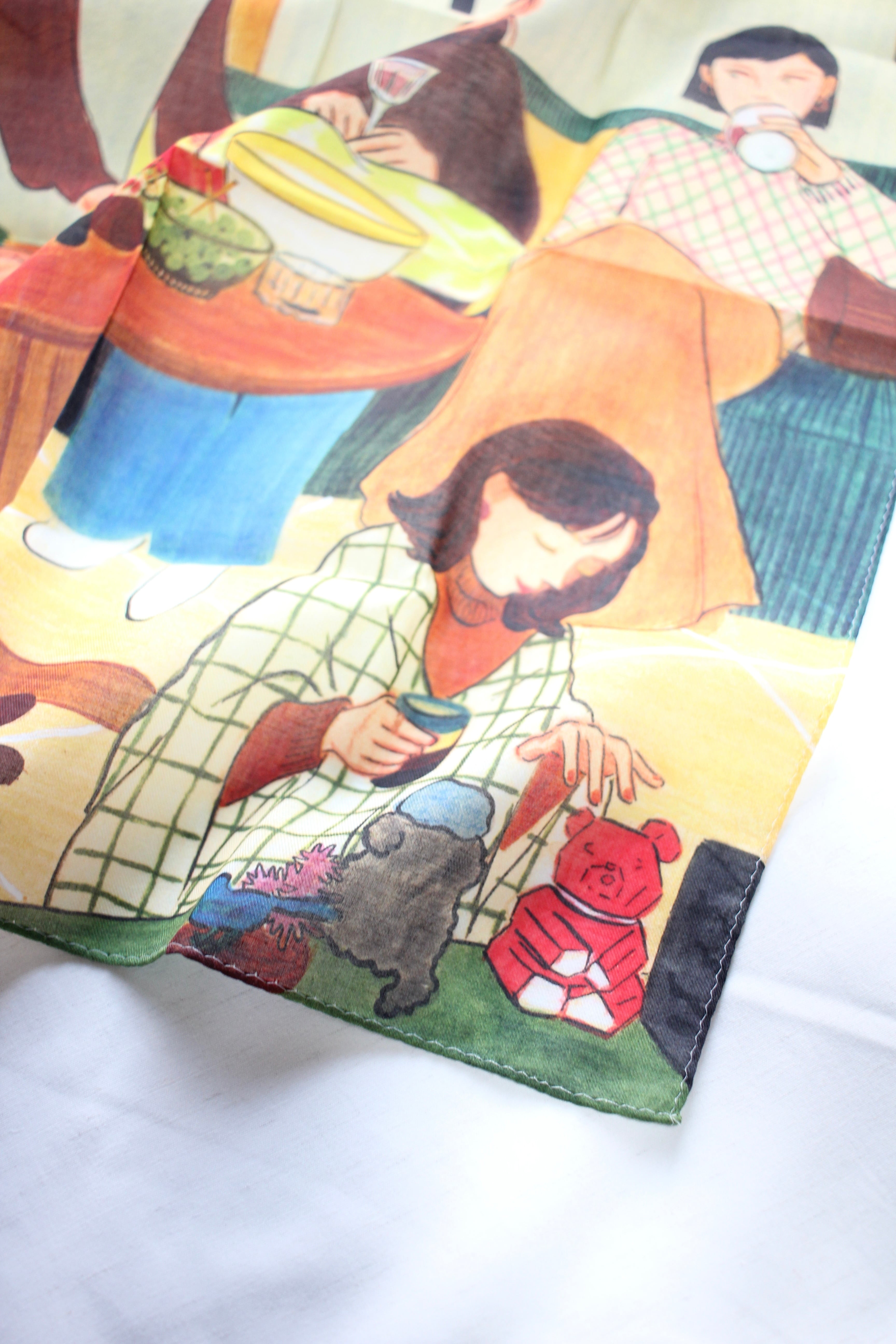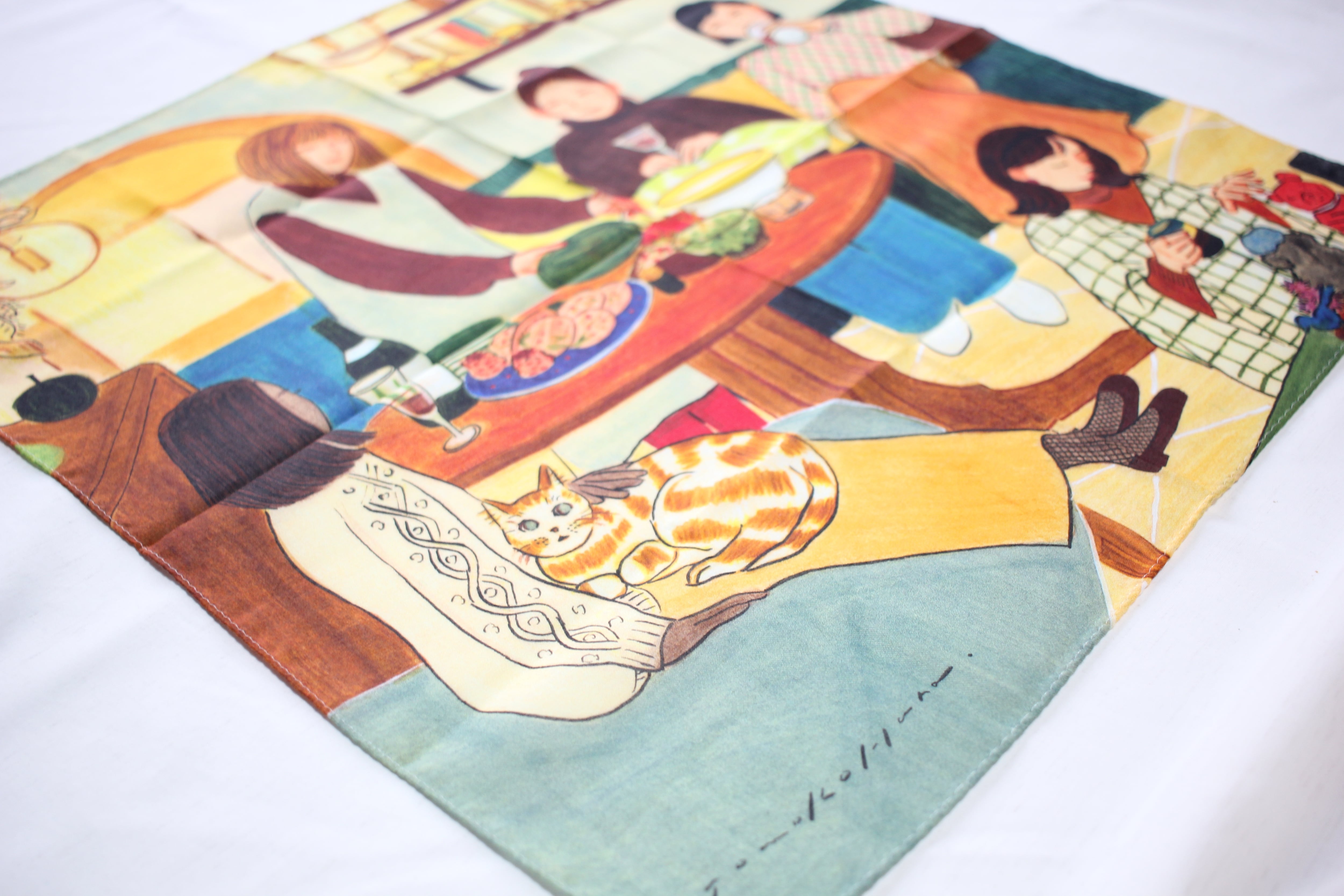 大判で柔らかなコットンのスカーフは、首元はもちろんヘアスカーフとしても◎