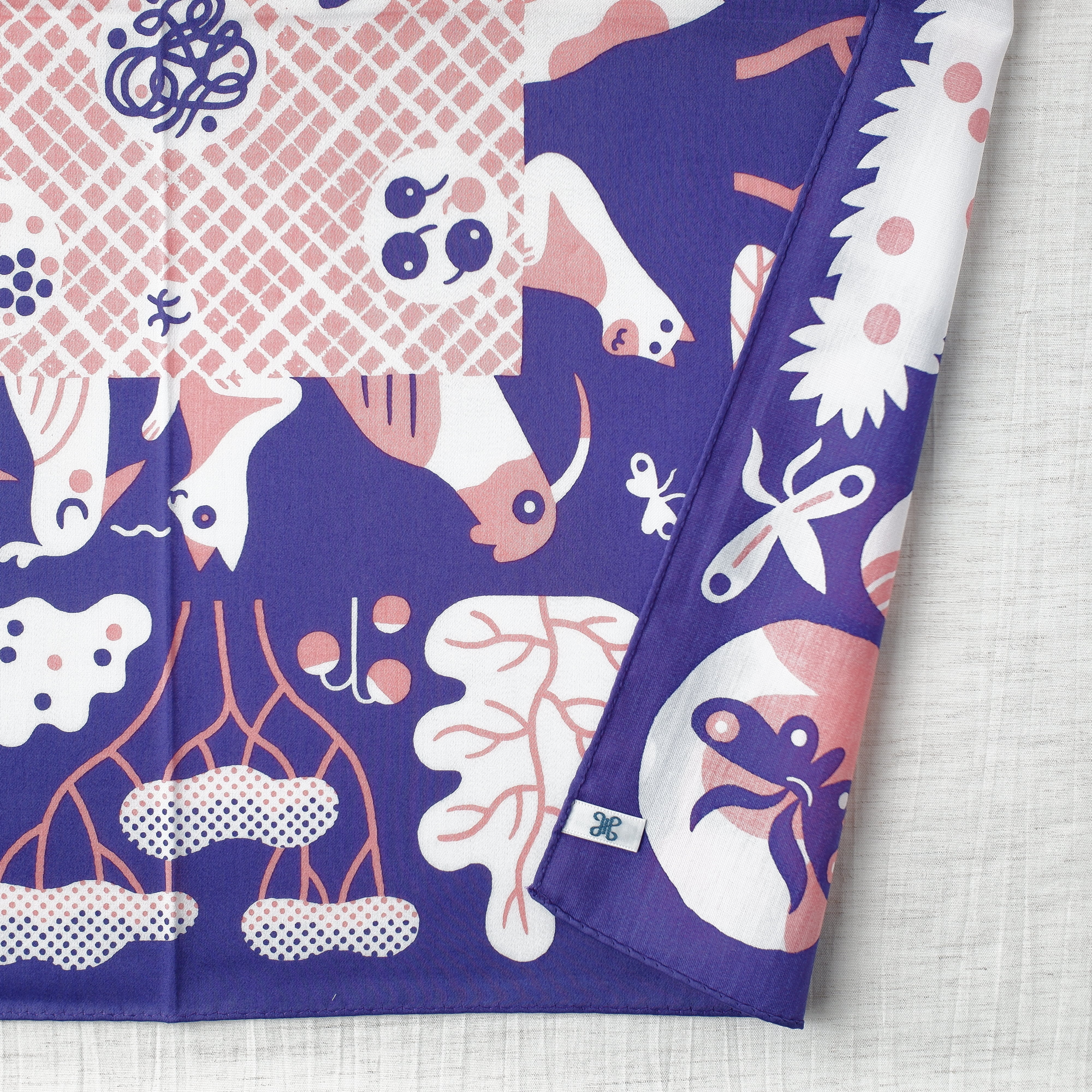 カラフルな一枚は、首に巻いてスカーフとして使ったり、ヘアスカーフとしても身に着けても素敵♪