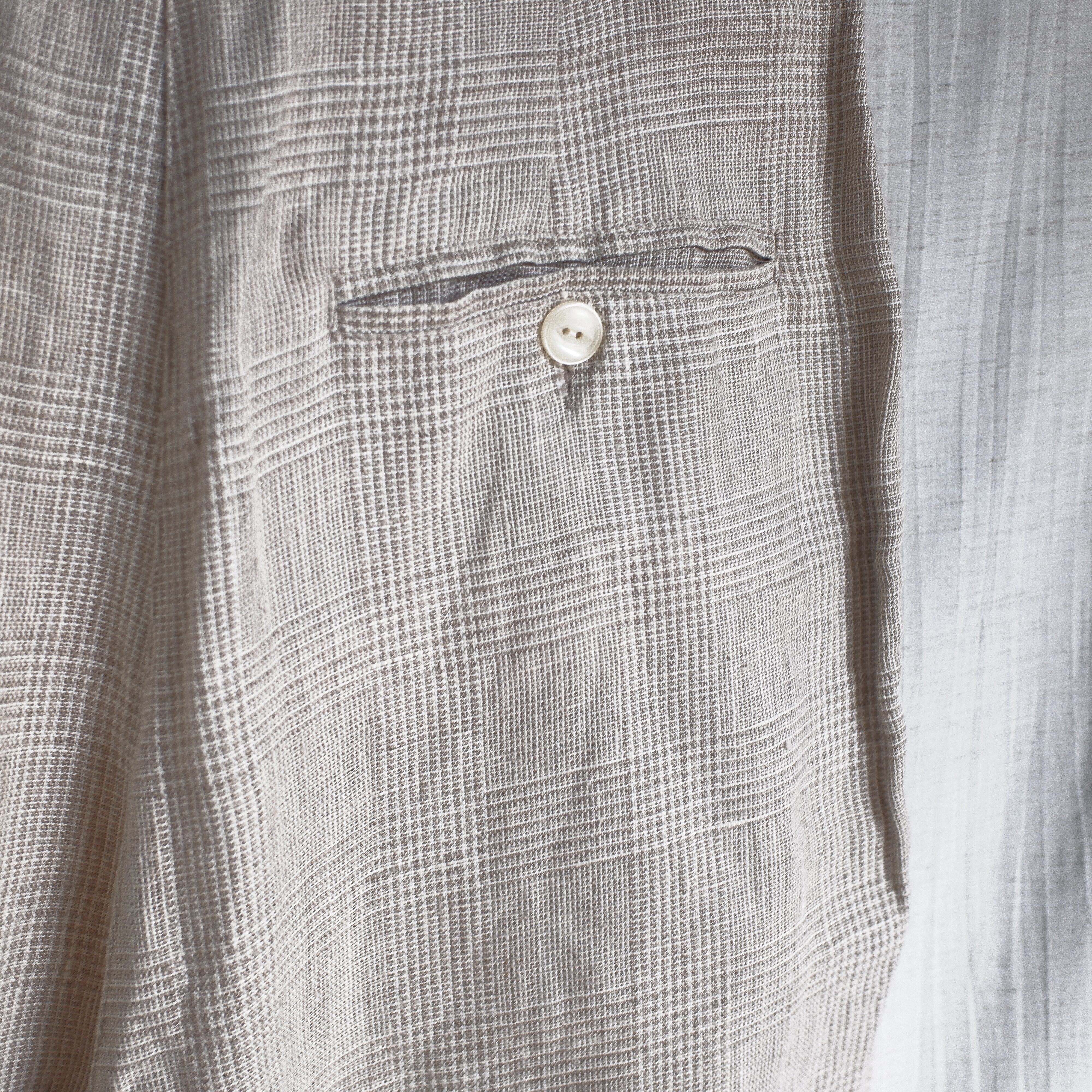 薄いベージュカラーで、よく見ると細かいチェック模様の入ったデザインは、どんなトップスとも合わせやすく、スタイルを明るく見せてくれますよ♪