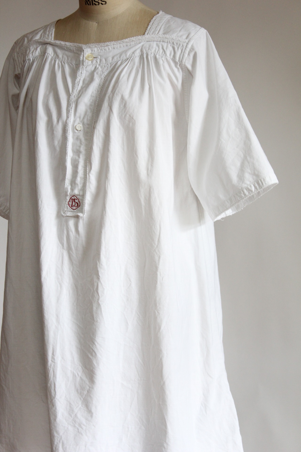 フロントボタンに施された刺繍がポイントのチュニックワンピース。