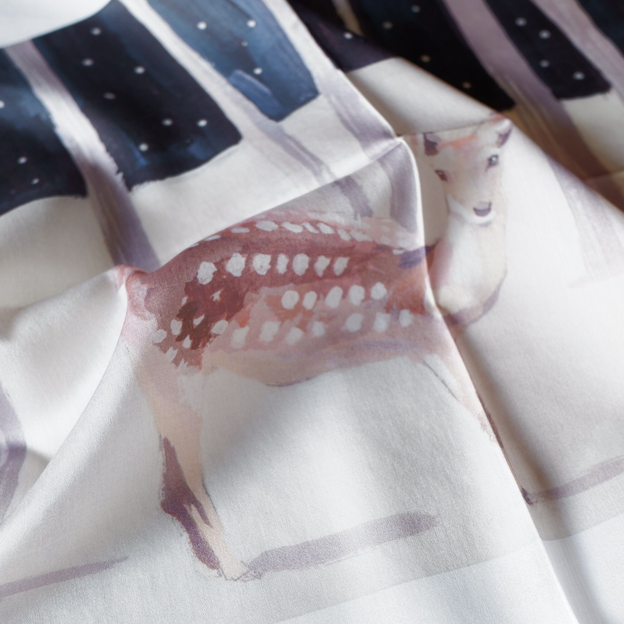 淡いタッチで描かれた夜の森にたたずむの鹿。