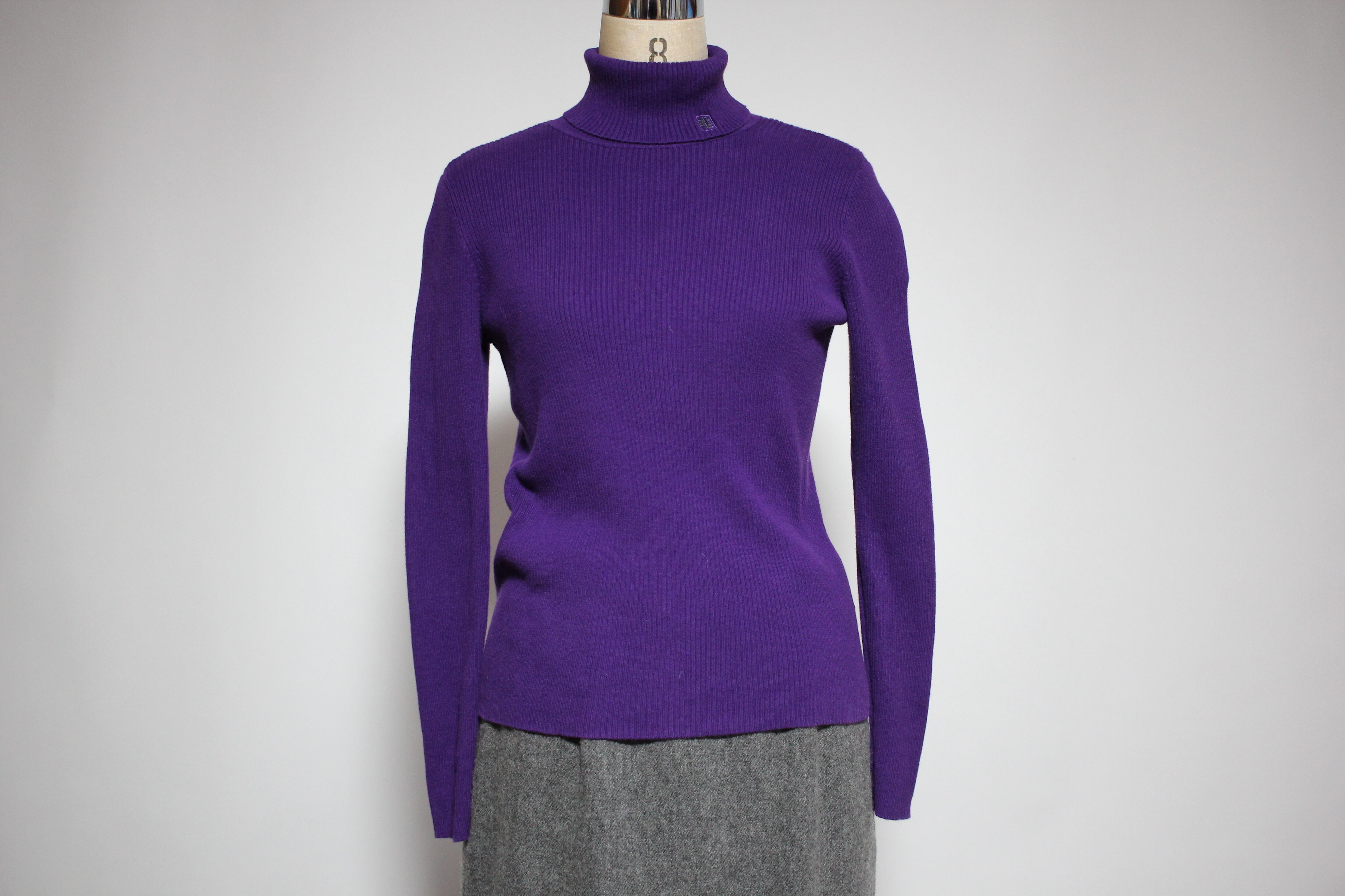 コンパクトですっきりとしたシルエットのタートルネックセーター。